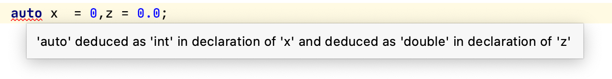 - 使用auto时,不能有二义性的推导,例如