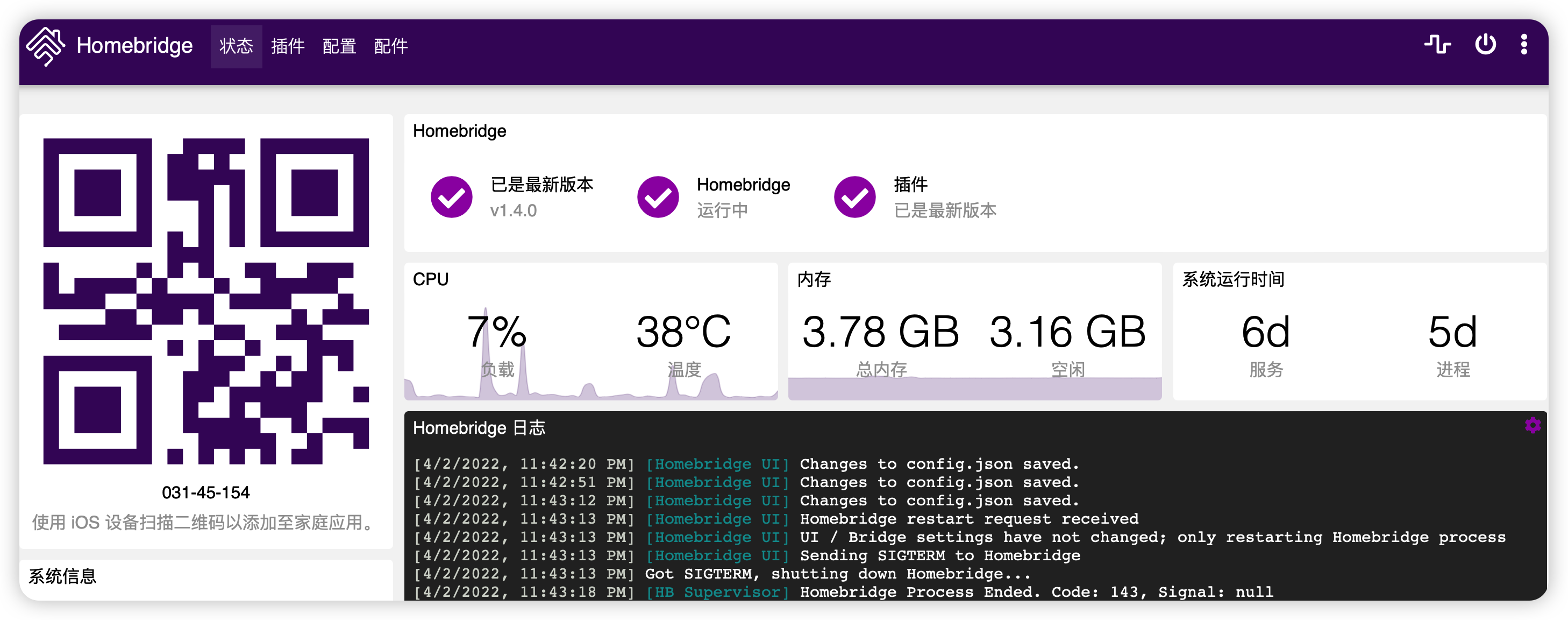 配置完成后,重启homebridge.